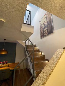 Bereits beim Betreten der Wohnung wird die besondere Raumwirkung spürbar: Die durchdachte Aufteilung über zwei Ebenen schafft eine elegante Trennung von Wohn- und Rückzugsbereichen und vermittelt ein offenes, zugleich behagliches Wohngefühl.